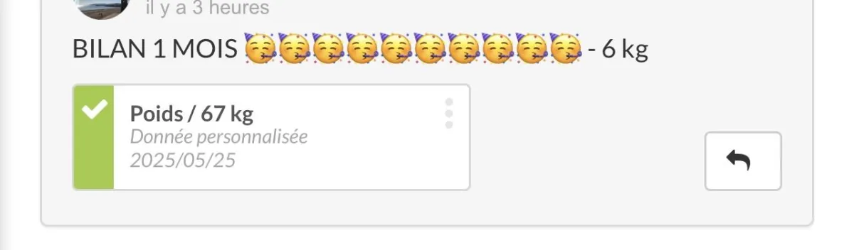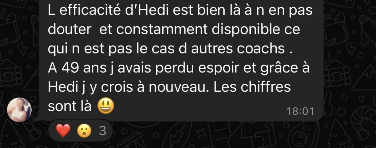 Chaque résultat dépend de nombreux facteurs, notamment votre implication, votre régularité et votre engagement à suivre les conseils et programmes fournis. Les exemples partagés reflètent le travail et les efforts spécifiques de chaque personne accompagnée.